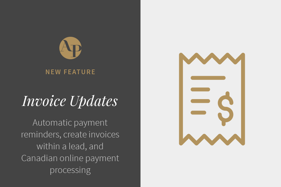 We received a lot of fantastic feedback about how much you loved being able to send invoices to your clients in Aisle Planner and we wanted to make this feature even better. You asked to be able to create and send an invoice from within a Lead Record so, here it is! Hello, increased flexibility and better organization! Just a couple notes about the updates to Invoices: